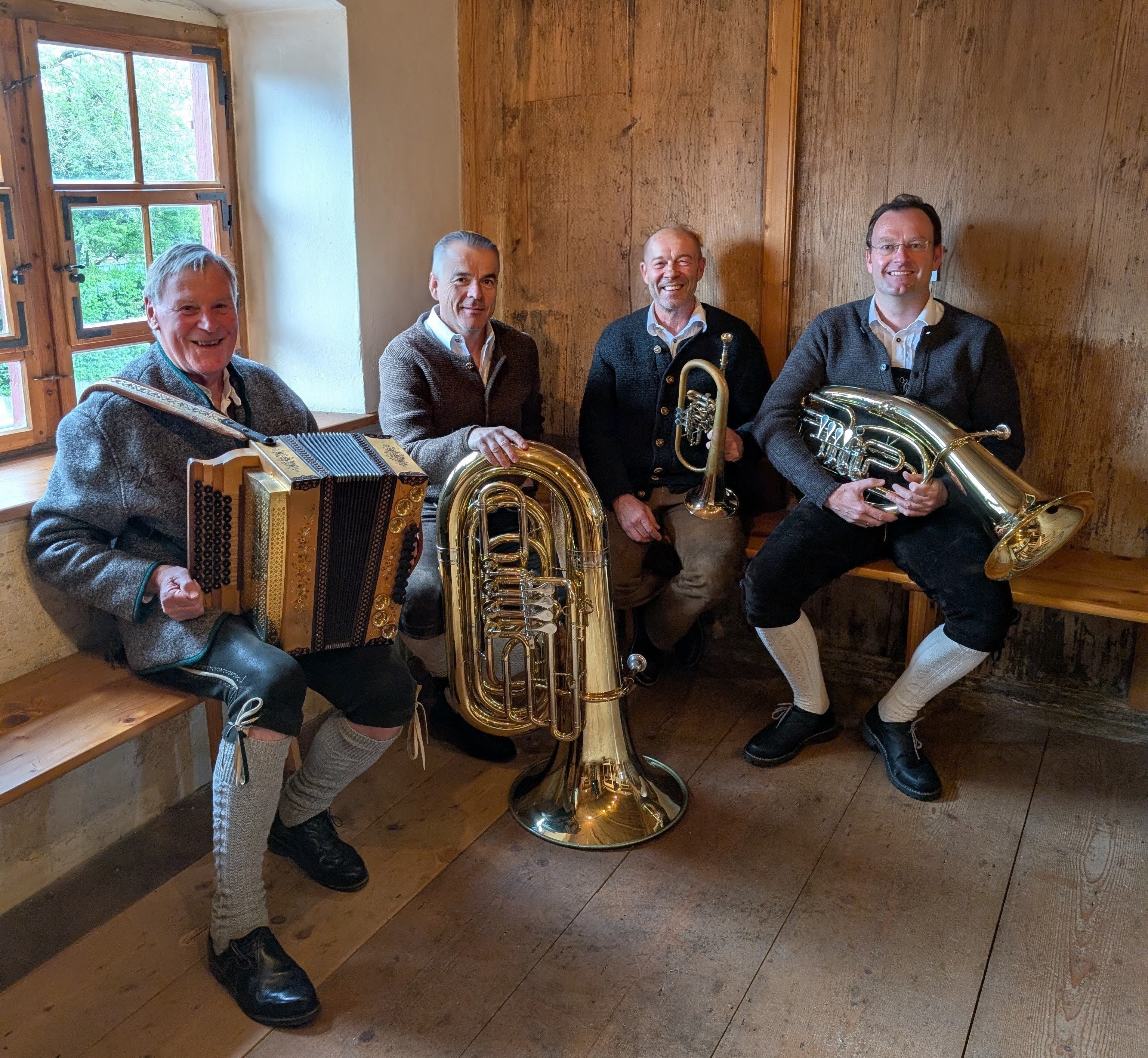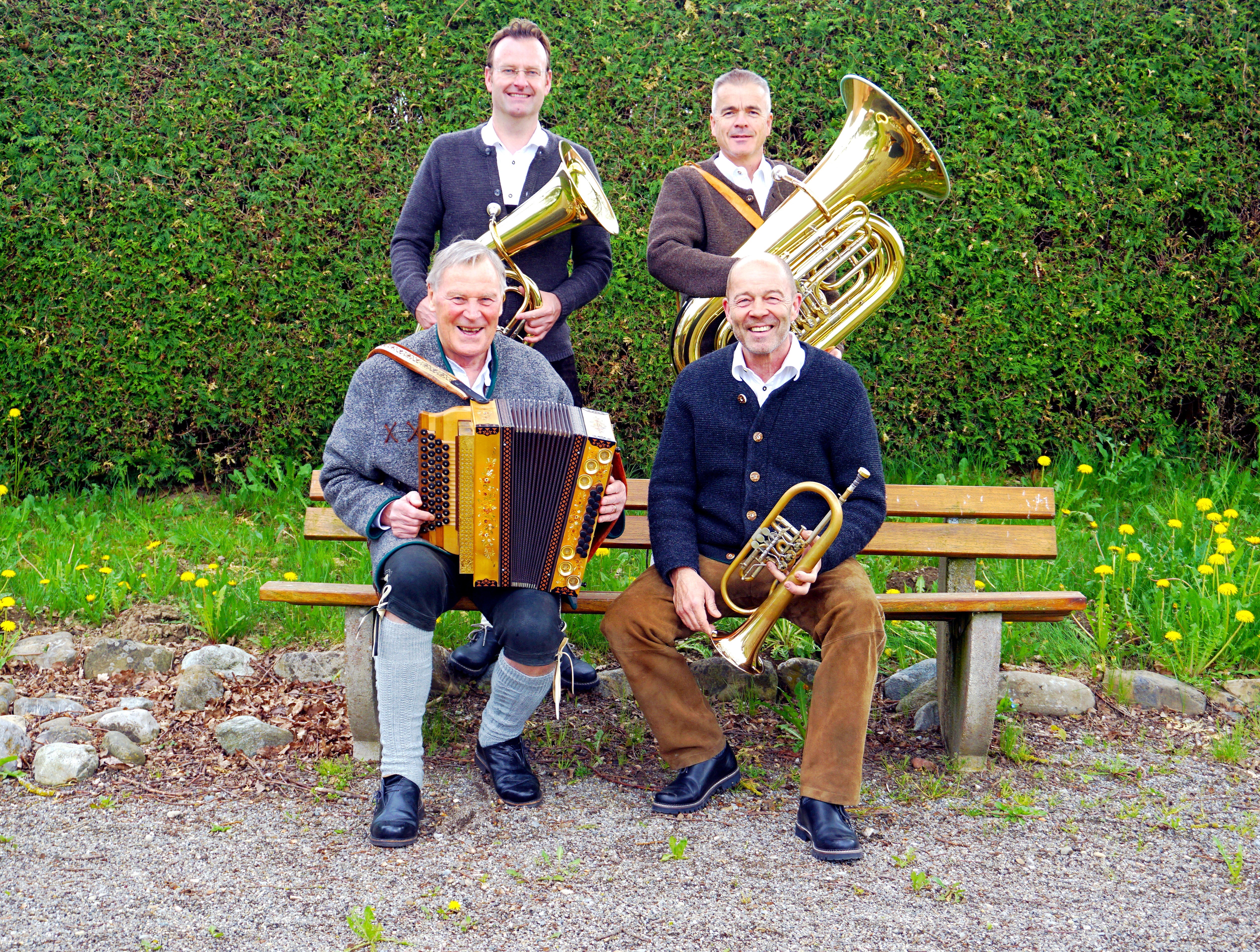 Zwischenzeitlich gesellte sich Monika Schmid (Gitarre) zur Gruppe, sodass sich mit Flügelhorn, Tenorhorn, Tuba, Steirischer Harmonika und Gitarre eine im Oberschwäbischen eher ungewöhnliche Besetzung ergab.